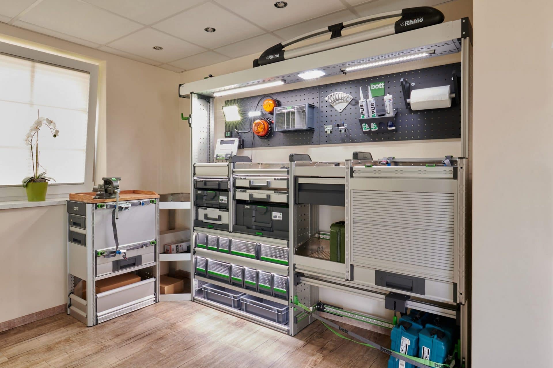 Um mit Ihnen die optimale Fahrzeugeinrichtung zu planen, halten wir in unserem Besprechungsraum eine Mustereinrichtung mit allen wichtigen Bauteilen vor.